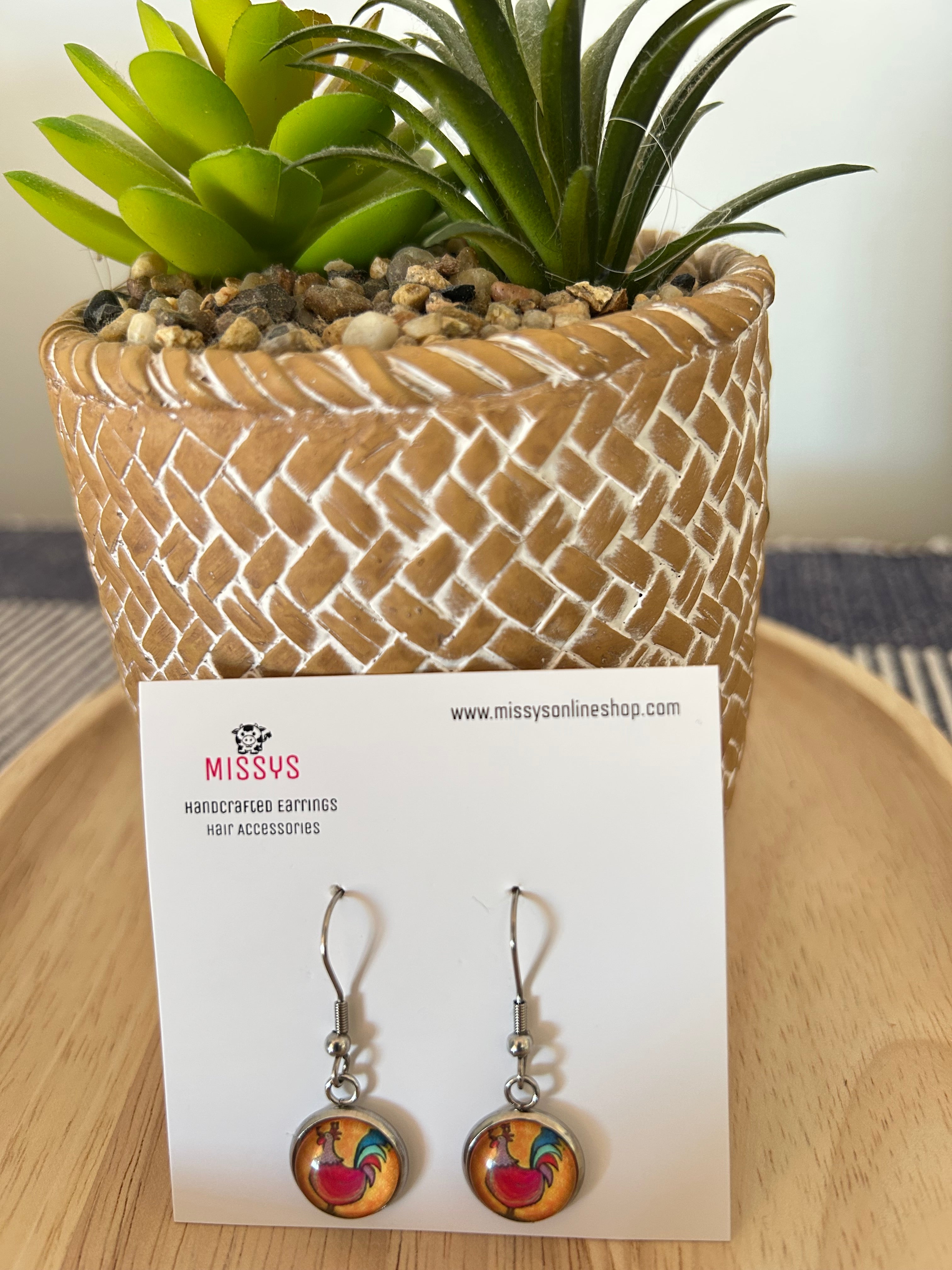 Rise and shine and pop in these fun and colourful rooster hook earrings!