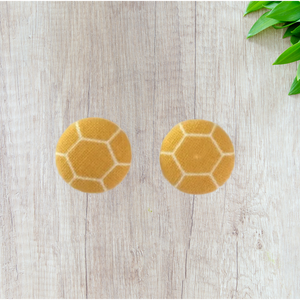 These cute Honeycomb fabric-covered stud earrings bring a fresh, unique touch to your daywear collection.