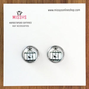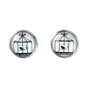 Bird in a cage dome earrings