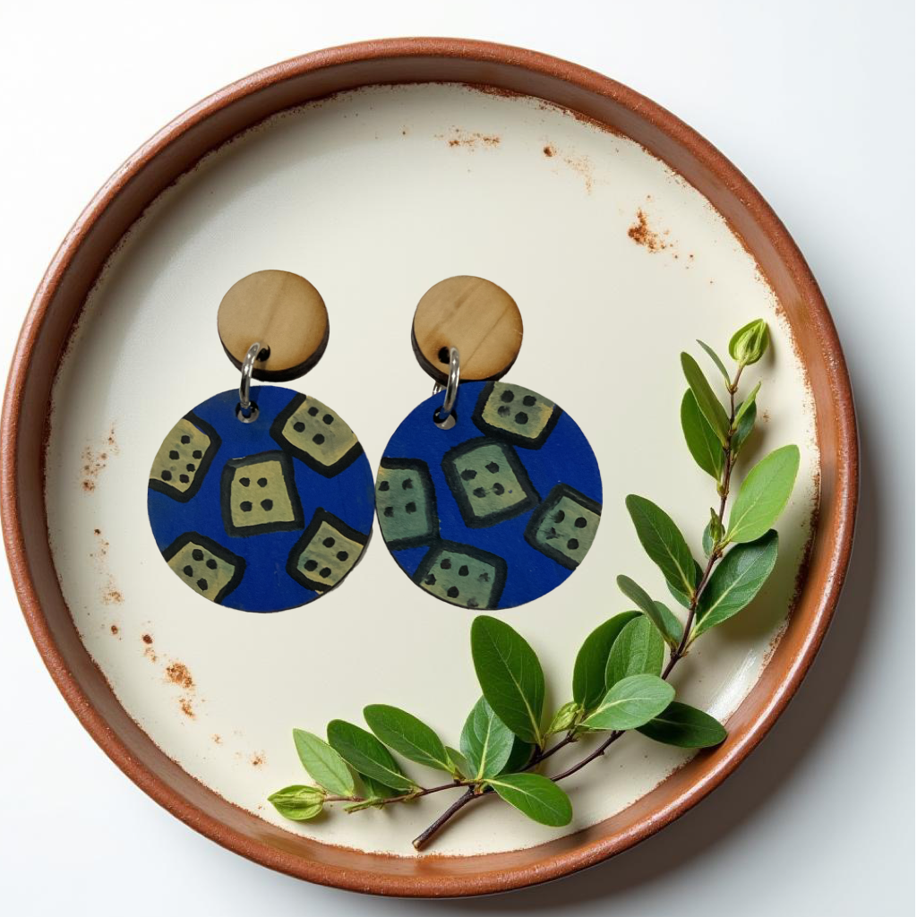 Add a pop of unique style to any outfit with our Blue Domino Handpainted Wooden Dangles.