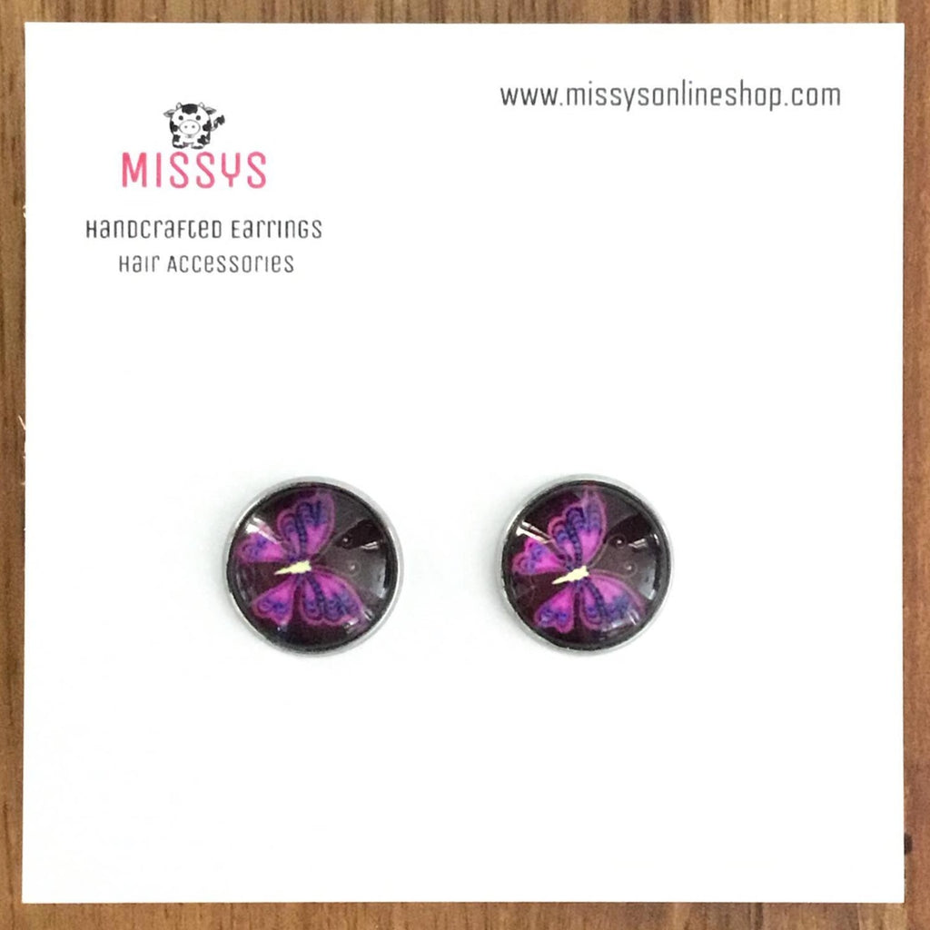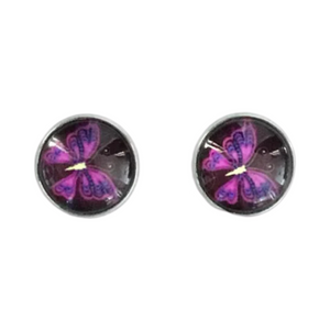Stand out with these eye-catching bright coloured butterfly glass dome stud earrings!