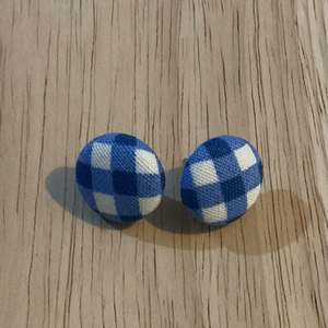 Experience the timeless charm and elegance of our popular Classic Gingham fabric covered earrings in Dark Blue. They will become a favourite accessory