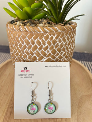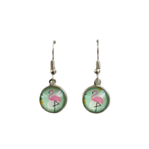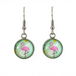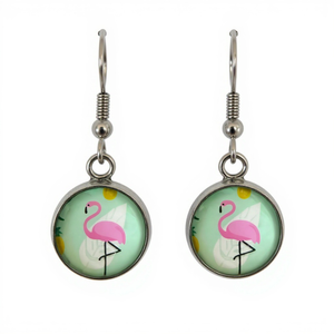 The 12mm pink flamingo dome is nestled within a stainless steel bezel tray and wire hook for a look that everyone will admire.