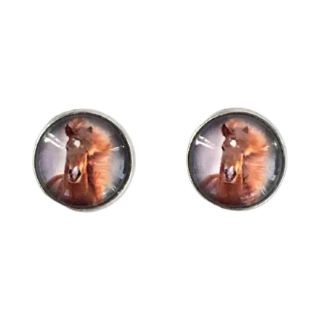 Featuring a brown horse with a white forehead star, presented in a stunning glass dome with a 12mm diameter, these earrings will add some playful fun to your look.