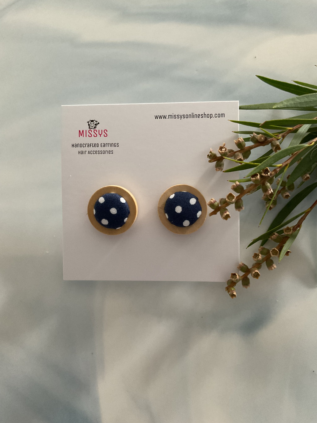 Stylish and fashionable polka dot fabric wooden earrings