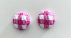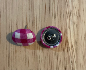 These adorable stud earrings are as cute as a button and come in a gorgeous plum coloured gingham pattern