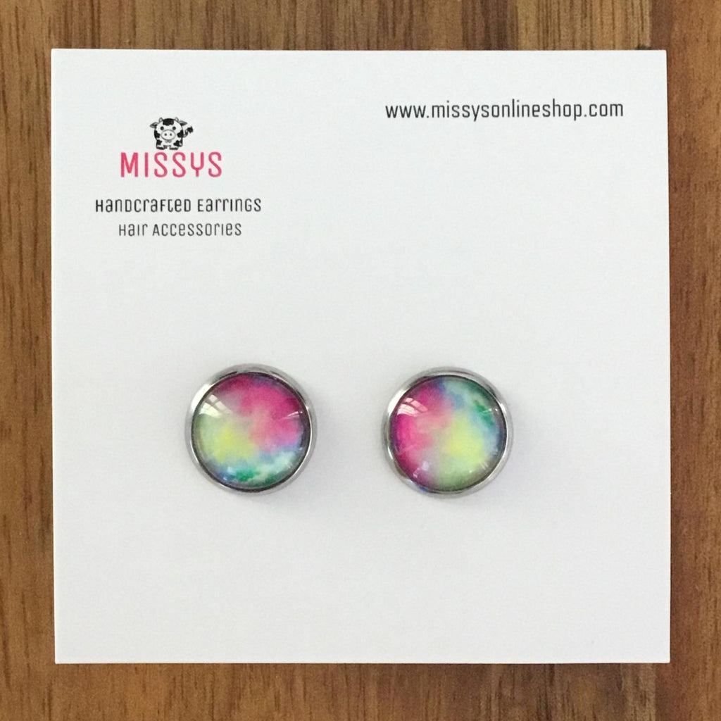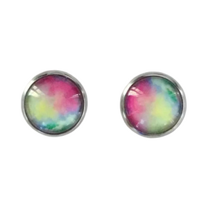 Lovely rainbow tones are a feature of these glass dome earrings