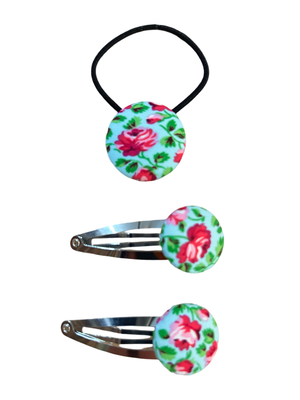 Add a charming touch to your little girl's hairstyle with our Red Roses hair clips and tie set!